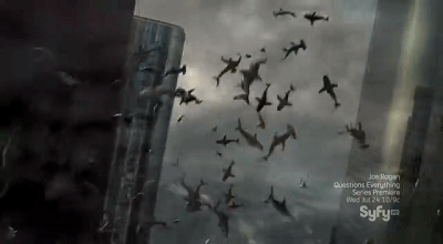 看过的观众不仅笑了,而且笑疯了,龙卷风太超级了,不止摧毁了建筑物,还把附近海域的所有鲨鱼都吸到一起,全部卷到天上。更扯的是,这些鲨鱼在天上飞来飞去不但没死,从天上掉下来还会吃人。