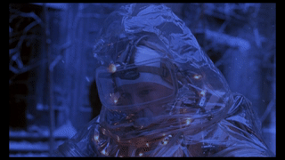 2035年科尔在地面上穿的类似雨衣的服装——1990年精神病院为防止科尔伤人而给他穿上的类似雨衣的“紧身夹克”;