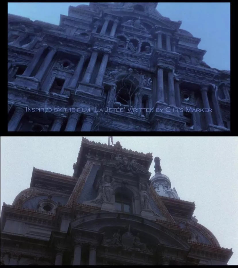 值得一提的是,本片的构思始于编剧克利斯·马克早在1962年的一部短片《堤》,描述了看见来自未来的自己在自己面前死亡的情节。这也是穿越说最有力的官宣明证。