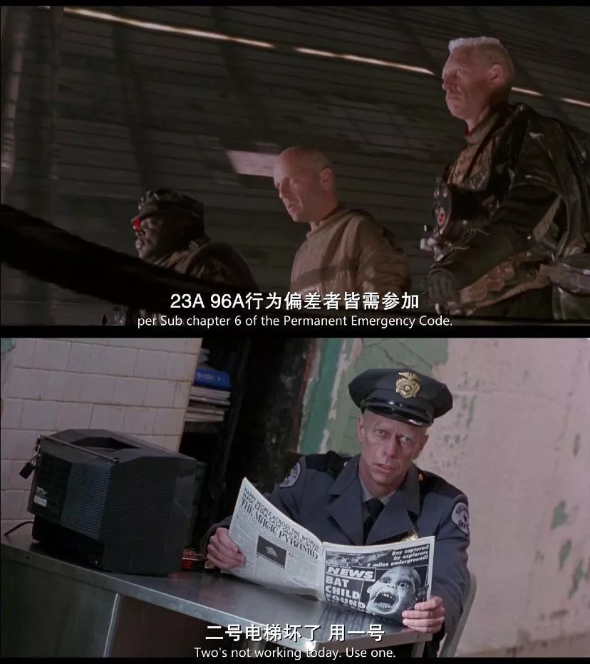 2035年地下监狱里征求“志愿者”的广播——1996年飞机场征求“志愿者”的广播;
