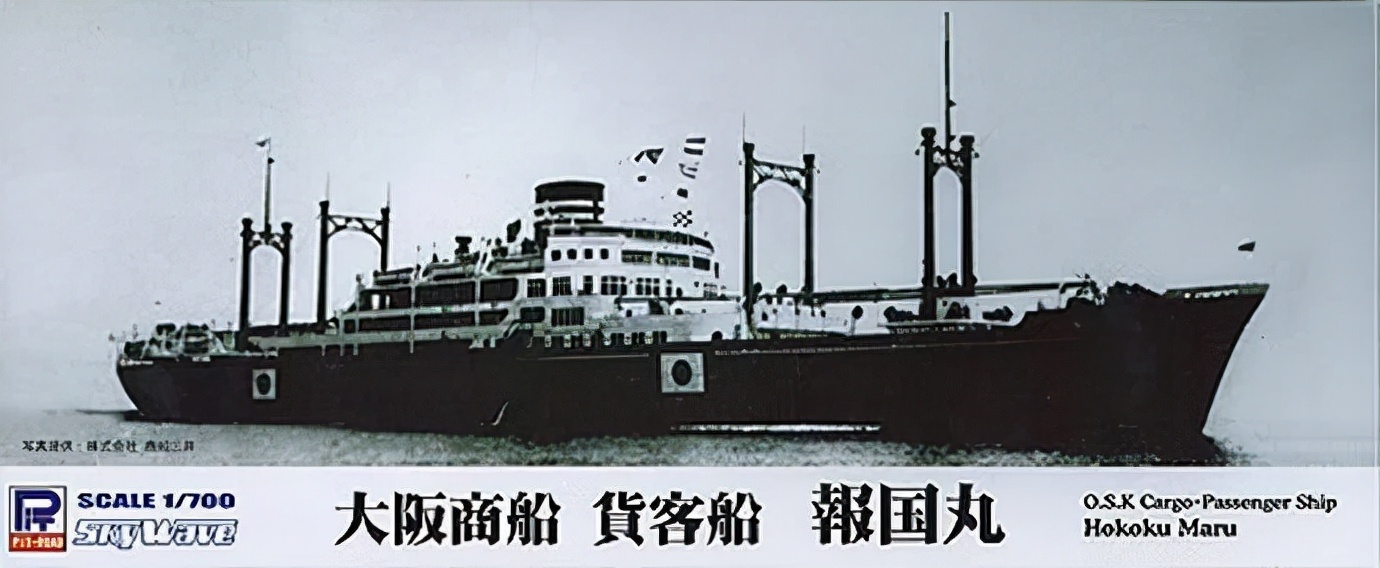 1935年5月17日,为了增强日本海外航线的航运实力,大阪商船社订购了3条豪华客货轮,分别命名为“报国丸”、“爱国丸”和“兴国丸”(后来改名“护国丸”)。从数据上看,这一级客货两用船长160.8米、宽20.1米、吃水12.5米,7529登记吨。动力部分为两座柴油机,总功率19427马力,最高航速达21.1节。报国丸级的船型非常漂亮,内部装饰极为奢华,内部的每个房间都是用日本的古国来命名。