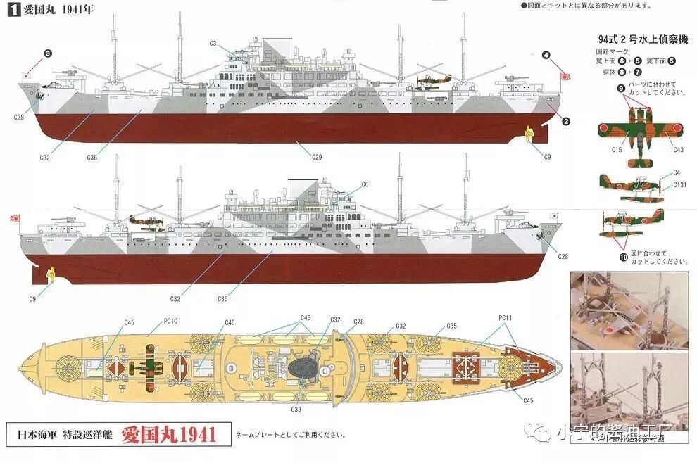 图7. “爱国丸”1941年状态,注意开放式的前后炮台和水侦下方的六年式鱼雷发射器