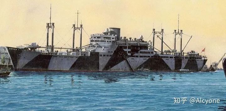 图10. 1942年5月停泊在槟榔屿的“报国丸”,注意此时船身已经带有迷彩涂装