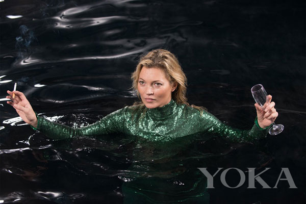 首先,非客串的大牌配角:kate moss!标志性的亮片礼服出场,依旧是右手夹烟,左手香槟: