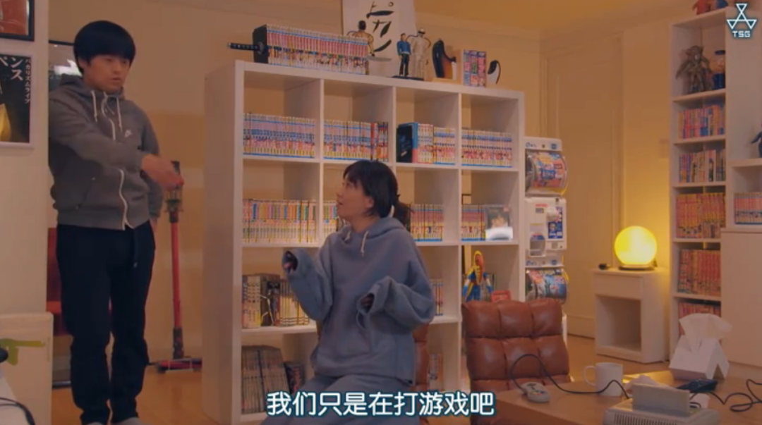 第一集中,水川姐姐到升野的家中(也是工作室)打游戏,突然有人来访,然后担心被别人误会他们在搞不伦,然后躲了起来....