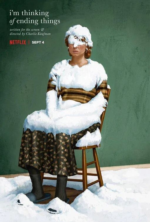 奈飞新片的这张海报,一反常态油画风格,美女坐在椅上,身上已经被白雪覆盖了一部分,包括眼睛、头发、肩部、裙子,似乎她无法逃脱冰冷的一切,颇有创新精神。