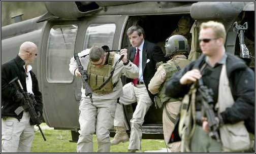 除了保卫跨国集团后勤,承包商也做私人业务,还有保卫政要。比如美国官员在伊拉克时跟他形影不离的就是承包商的保镖。这类人都是比较厉害的角色了,他们才能拿到工作轻松报酬又高的工作,不用一上场就端着ak到处找掩体。