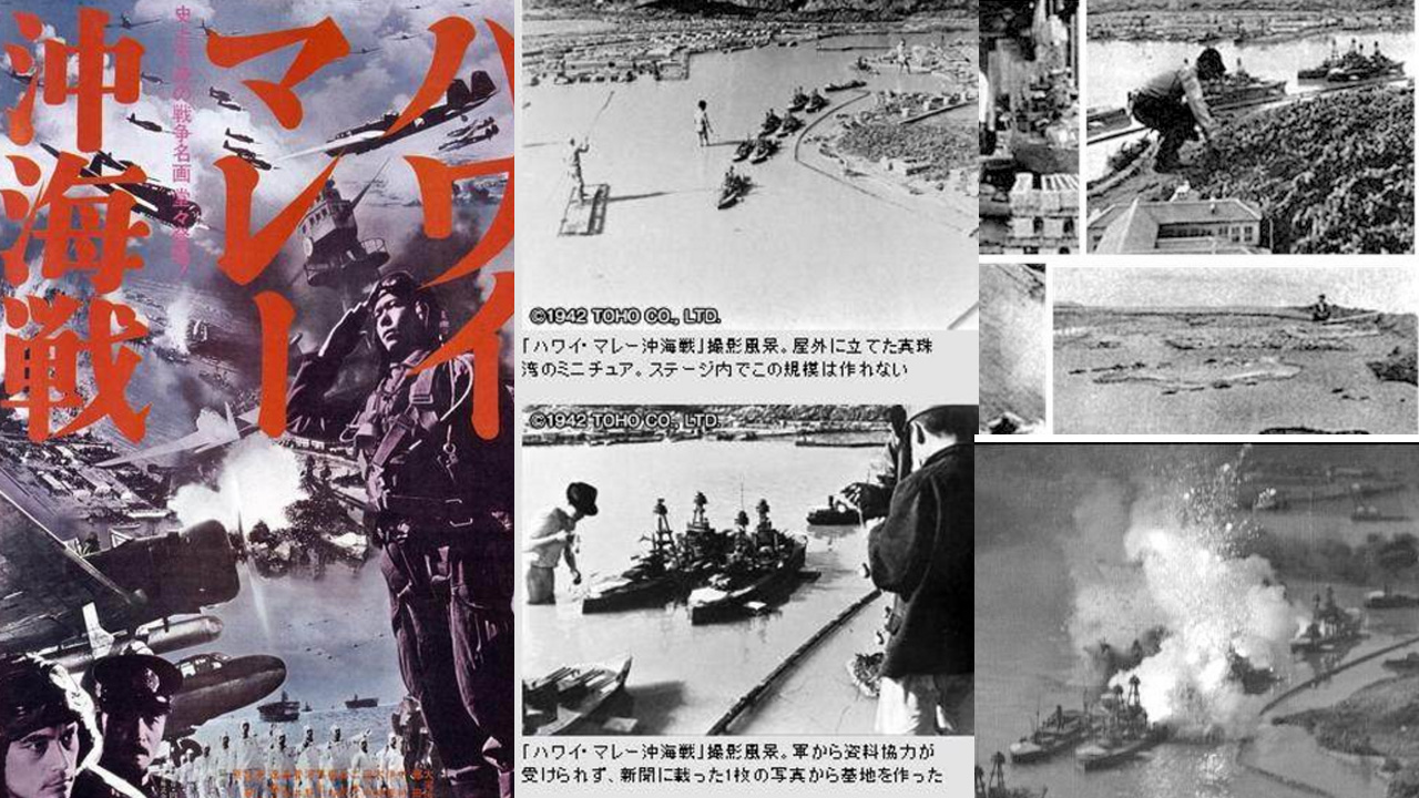 珍珠港空袭这部影片在1942年制作完成,当时正是日本和美国交战最为疯狂的时候,日本方面通过搭建模型,通过特摄技术复现了珍珠港偷袭,这部影片曾被美国认为是战场的真实纪录片。