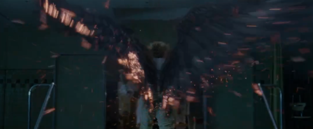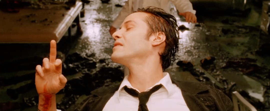 在他飞向天堂的途中,康斯坦丁背对着路西法,竖起了中指。