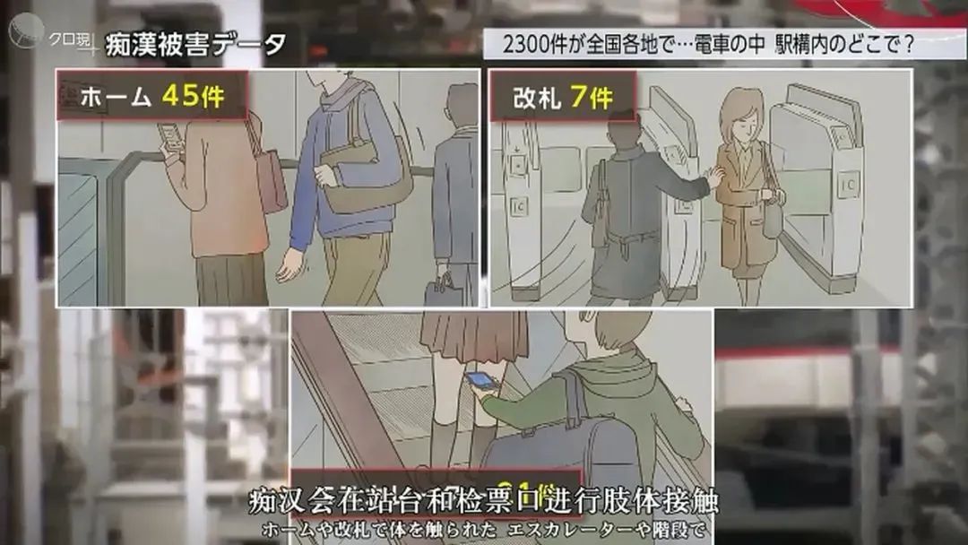 在这种需要被迫与陌生人近距离接触的空间内,很多受害者经常是不经意间就遭到痴汉的骚扰,站着、坐着、上下车、进出站时,都有可能被突如其来的脏手触碰,可谓防不胜防。