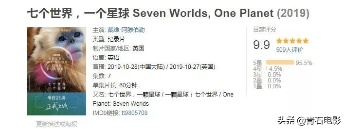 作为bbc自然历史部的代表,bbc 星球系列通过多部纪录片对地球的揭秘,让我们对我们生存的地球有了更多的了解,拉近人类与自然的距离。