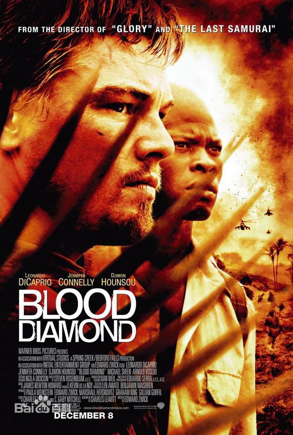 剧情简介:九十年代非洲塞拉利昂,连连战火使这片土地饱受摧残,非法钻石贸易日益猖獗。 阿彻(莱昂纳多?迪卡普里奥 饰)是一个地道的战争贩子,靠倒卖战区钻石为生,他在监狱中无意得知渔夫所罗门手里有极品粉钻。意识到这是自己离开非洲的机会,出狱后,他找到所罗门,准备和他一起找出钻石,离开非洲。 所罗门是普通的渔民,因为内战和家人分离,被叛军强制开采钻石,他发现一颗极品粉钻,藏了起来;战乱来临,所罗门进了监狱,后被阿彻救出,并在战地记者麦迪?鲍文(珍妮弗?康纳利 饰)的帮助下,找到了失散的家人,此时,他的儿子迪亚却被叛军带走,生死未卜。 悲愤的所罗门答应和阿彻合作,在叛军的控制范围内寻找钻石,并寻找儿子。 两个截然不同的人,因为一颗血钻将命运联系在了一起。