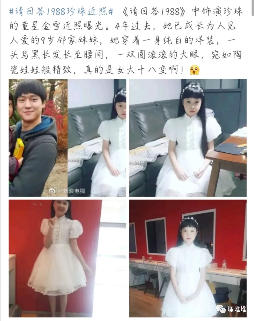 最近韩剧《请回答1988》里的小珍珠近照曝光,那漂亮精致的小模样让人完全认不出来!