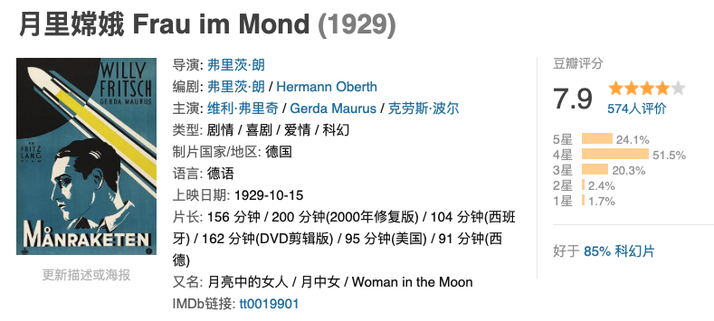 剧情简介:几位研究人员及淘金者抱着各自的目的乘宇宙飞船去月球探险。他们猜测那儿黄金蕴藏丰富。发现黄金后他出现争论而导致致命的枪战。子弹击中了宇宙飞船的氧气罐。因此剩余的氧气不能让所有人都能够平安返回,其中一人最终自愿留在了月球上。女天文学者出于对他的爱也愿意留下来。这部电影比人类实现登月足足早了40年。