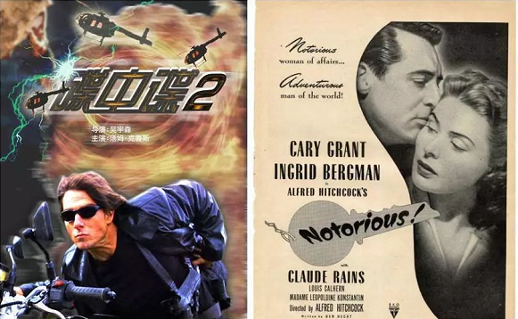 其实外国电影也有被套用的,例如吴宇森导演的《碟中谍2》就是源自于希区柯克的《美人计》,郑伊健与黎明演的《双雄》就是源自于肖恩康纳利的《勇闯夺命岛》,杨佩佩的《侬本多情》是源自于美国电影《脱衣舞娘》,蒋勤勤演的《七夜》是源自于希区柯克的《蝴蝶梦》。