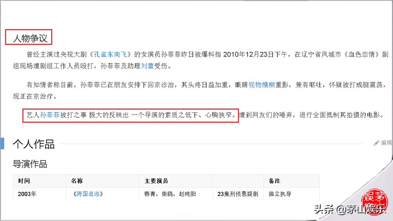 需要说明的是,执导《大商道》的导演张汉杰,虽说他也曾拍出过8.5分的《关中匪事》、8.3分的《关中秘事》,但他却被有着“古装第一美女”的称号的知名女演员孙菲菲公开“控诉”过他对剧本不负责任。张汉杰的个人百科上有这么一段话:“曾经主演过央视大剧《孔雀东南飞》的女演员孙菲菲”,“被爆料指2010年12月23日下午,在辽宁省凤城市《血色恋情》剧组现场遭剧组工作人员殴打,孙菲菲及助理刘蕾受伤”,“艺人孙菲菲被打之事 极大的反映出 一个导演的素质之低下、心胸狭窄。”