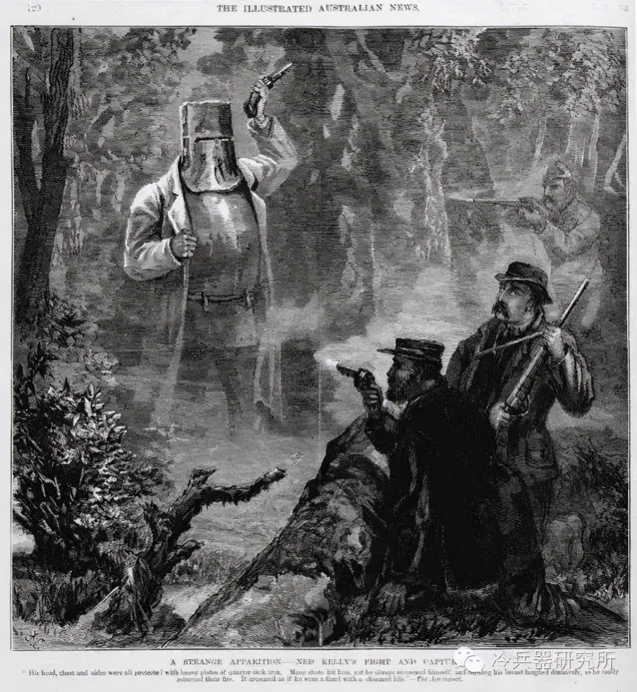 之前,为了对付军警的火力,内德·凯利为帮众设计了一套甲胄,形如古代的铠甲,由铁犁改造而成。这些甲胄,也是凯利帮后来后世的标志性符号。