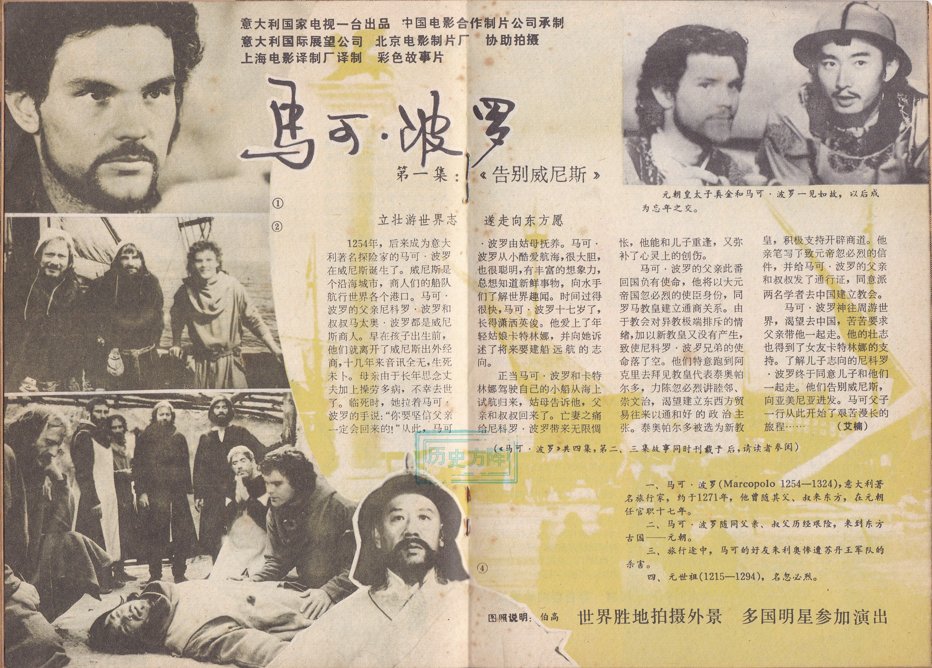 中国意大利合拍影片《马克.波罗》,是由约翰·福斯克执导的宫廷爱情电视剧,讲述了马可·波罗的东方冒险奇遇。