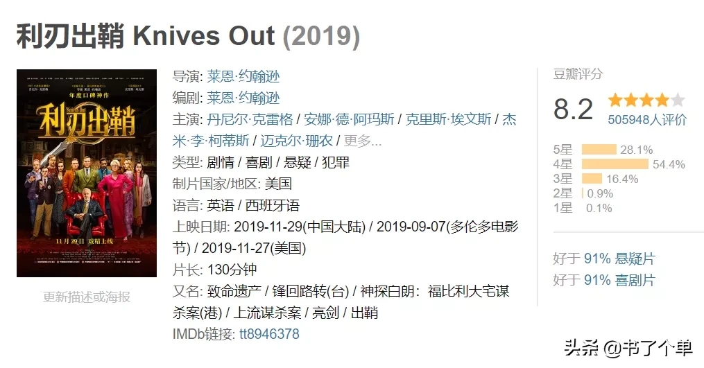 要说2019年底最受欢迎的电影,《利刃出鞘》一定会占据一席之地。