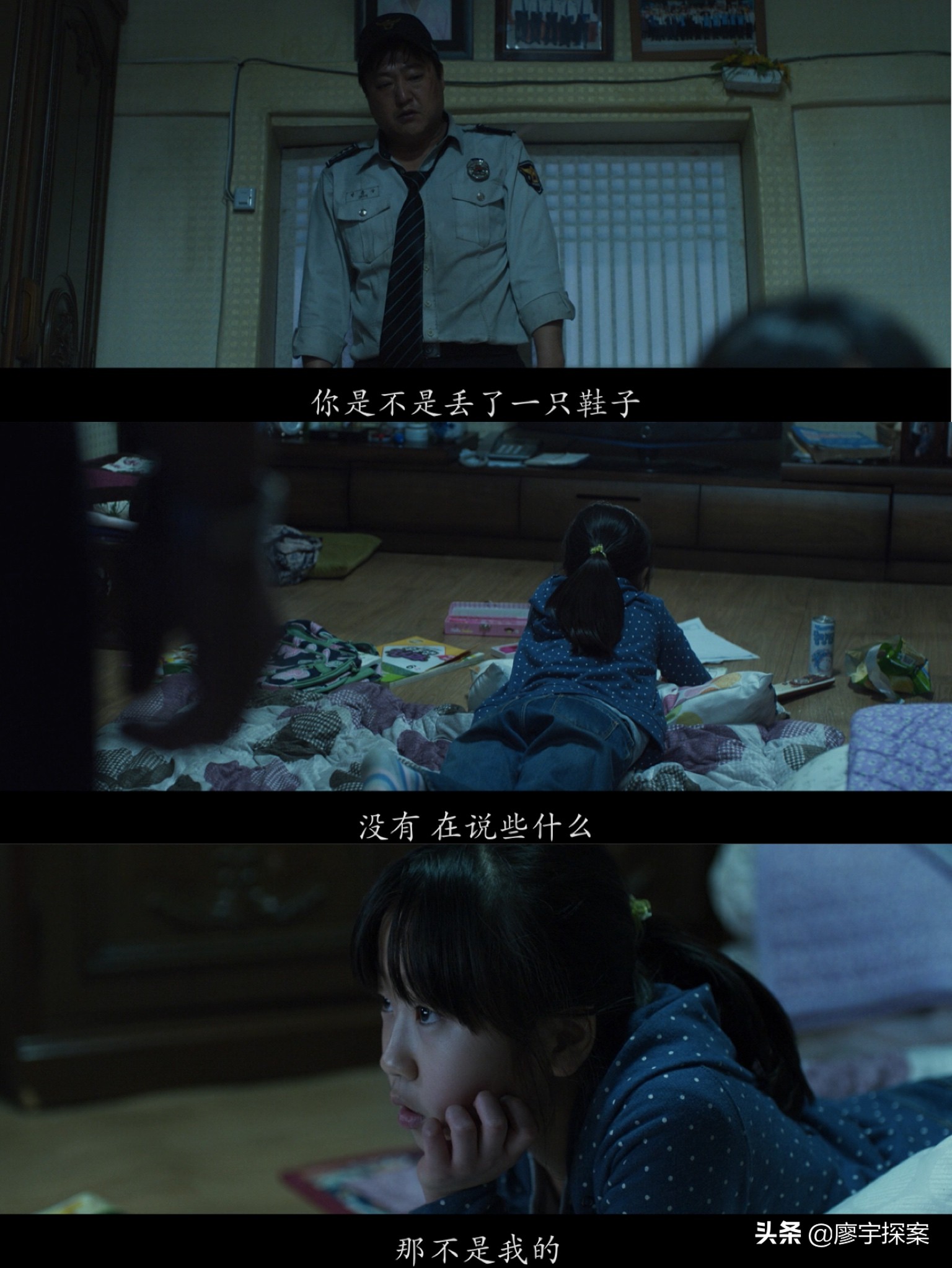 钟久回家质问女儿是否丢了鞋,女儿一口否定。这是为什么呢?如果仅仅是丢只球鞋有什么不敢承认的呢?除非鞋不是丢的而是落在那儿的,又或者说孝真不想说鞋在“日本佬”那里的真正原因,这里从某个角度印证了我前面对于孝真与日本佬发生关系的大胆猜想。