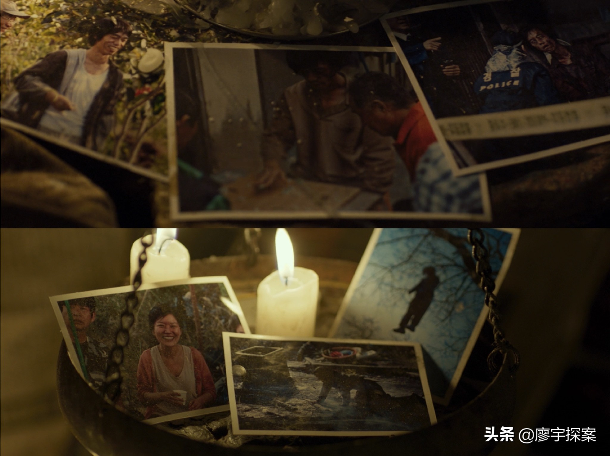 他们一行三人去“日本佬”的家中调查,发现了诡异的祭坛以及第一个恶魔的傀儡是朴炳国和第二个恶魔的傀儡不知名的村妇他们生前和死后的照片。注意他们三人是私自调查,而且后面还有一次,也就是说钟久作为一名警察,他的做事方式不合规矩,从而也反映了他的“愚昧”。警察尚且如此村民就更不用说了。