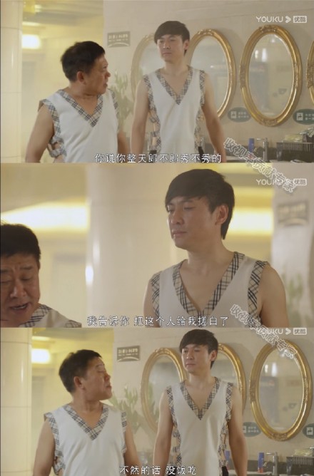 沈腾主演的《人见人爱》这一段很有意思,泡澡吹牛的大哥金链子能在水里浮起来,沈腾还要负责把一个黑人搓白,那要费老劲了吧哈哈哈哈。这部剧里的角色是郝建。 ?