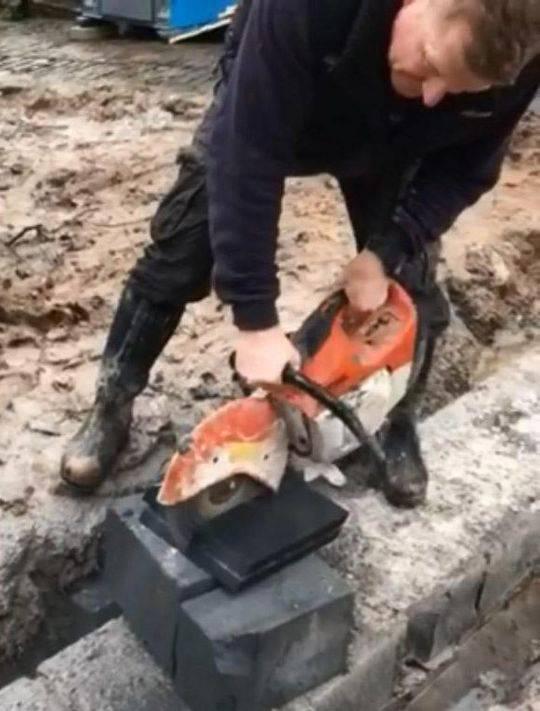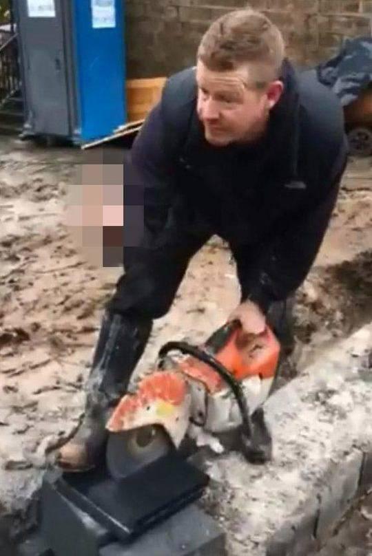 视频显示,建筑工人西蒙·肖(simon shaw)笑着打开了电锯,然后用电锯将一台价值400英镑(约3500元人民币)的playstation游戏机切成了两半,身边还有一个朋友拿着手机在拍摄切割过程。