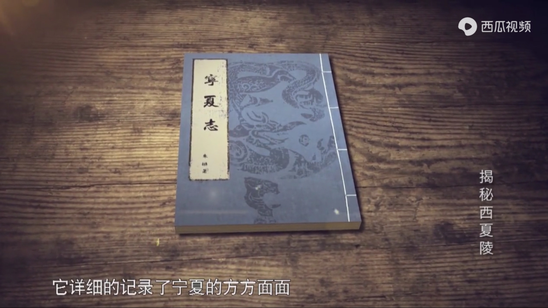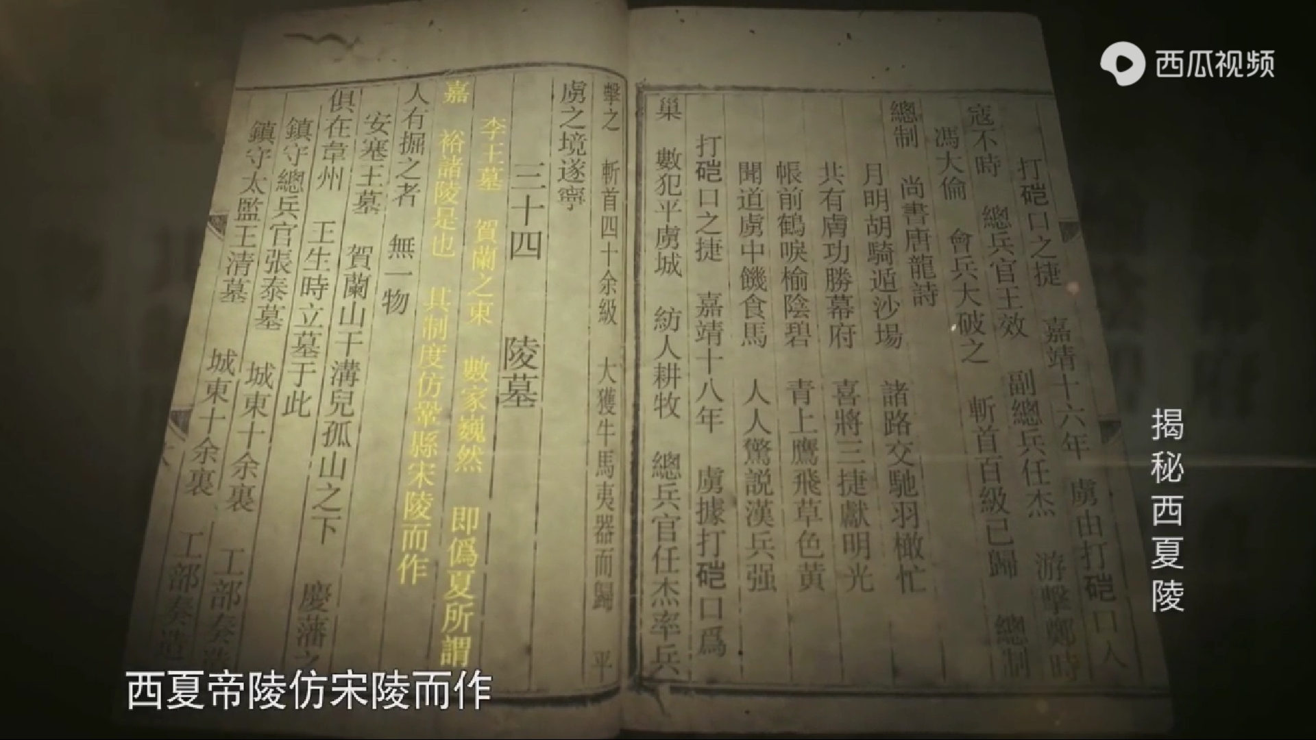 2018年,为了推进西夏陵申报世界文化遗产的工作,更好的向海内外宣传和推介西夏陵,一部纪录片《揭秘西夏陵》由此诞生,并在央视纪录频道《真相》栏目中播出,作者也在西瓜视频app中观看了其全部四集内容。《揭秘西夏陵》在线观看