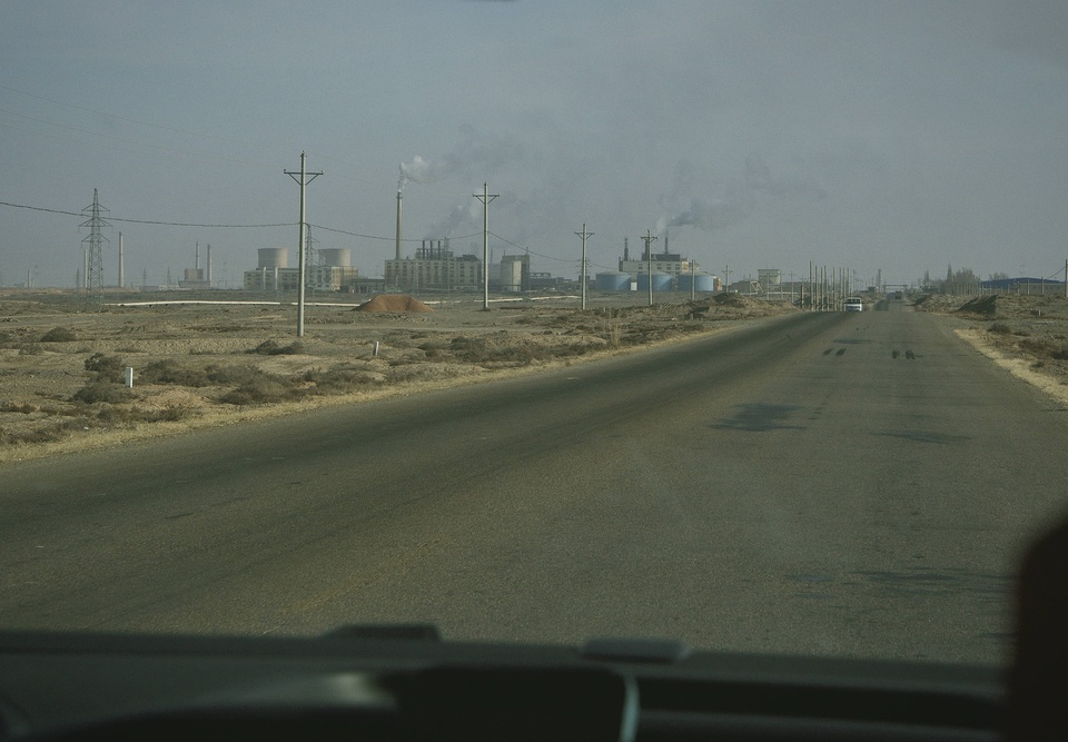 沙漠里有了人,便有了工厂,竖起了高高的冷却塔,建起了居民楼,甚至有了公园、假山和湖。随处可见的军队属于这里生活的日常,无处不在的工厂和冒着白烟的烟囱构成了这里的天际线。