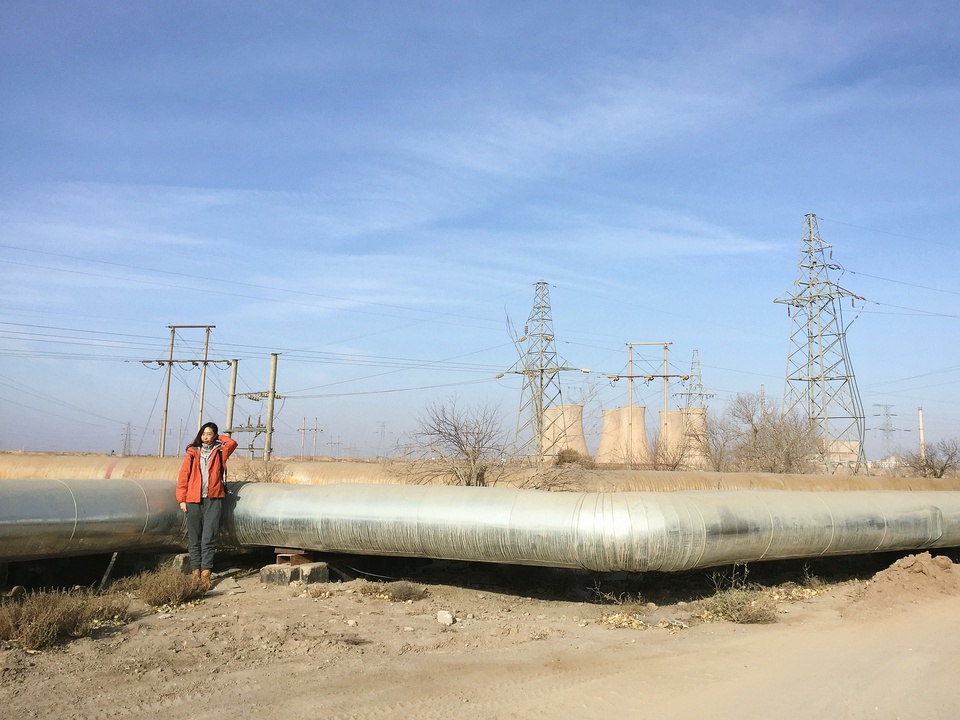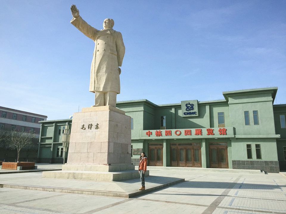 记得到达那一天的天空格外的蓝,云朵柔软的挂在空中,阳光可以尽情洒在大地上,映衬着满目土黄色的枯树和建筑。风还是如以往一样大,但沙好像没有太放肆。从核城公园到中核404展览馆前的毛主席像,从一个个高耸的冷却塔到废弃的学校,我们仿佛闯进了别人的回忆。