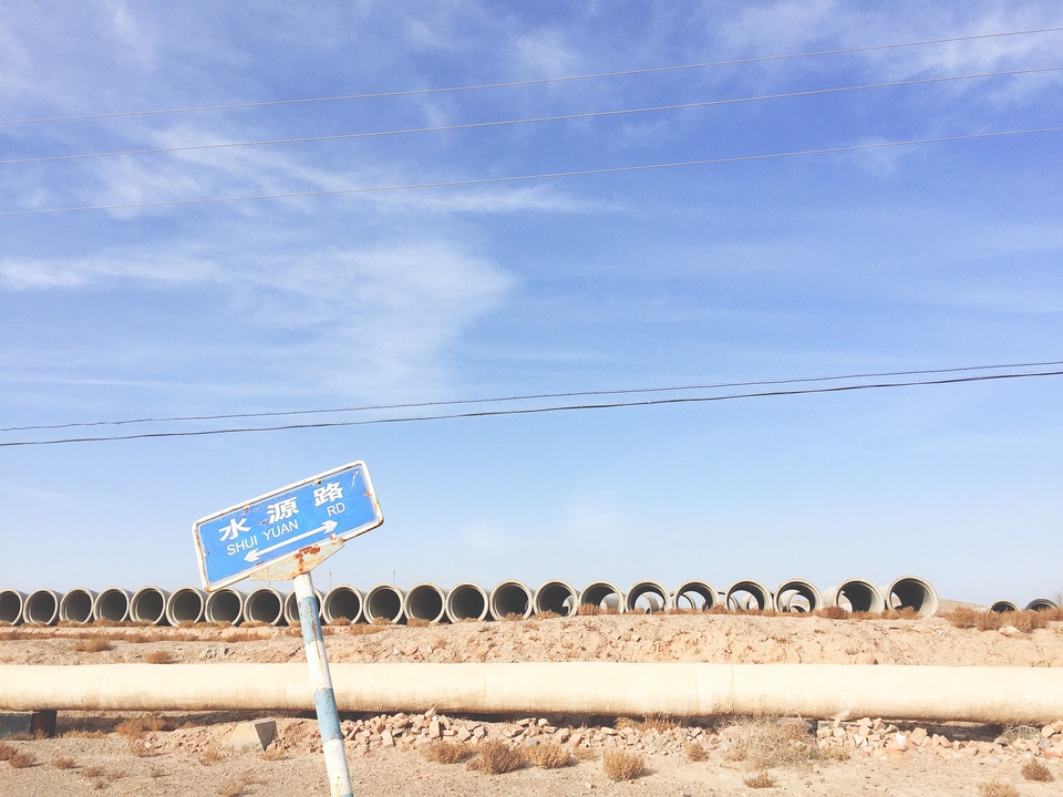 404所在的戈壁滩本没有水,这里的水是人工引流祁连山上的水而来。