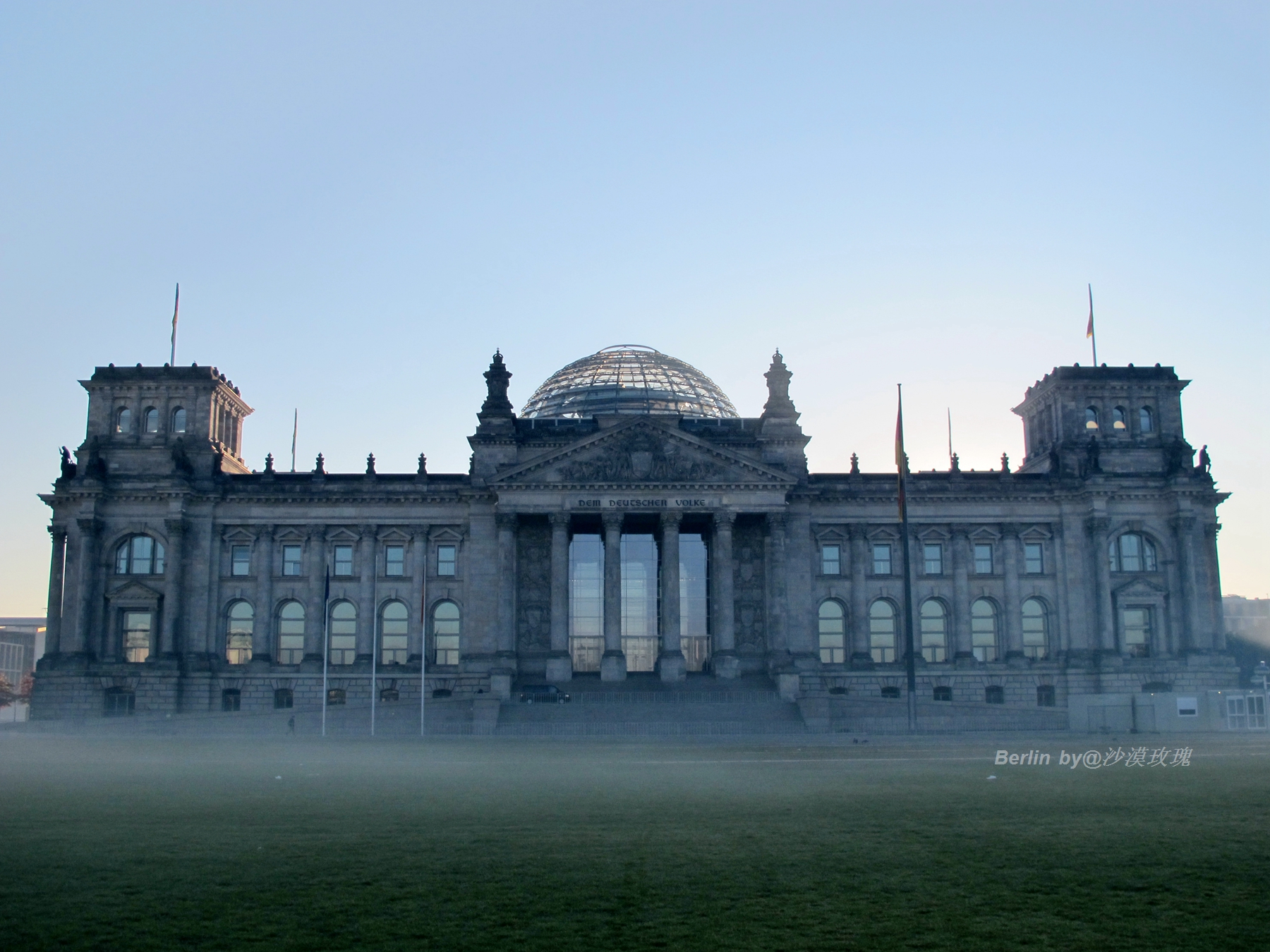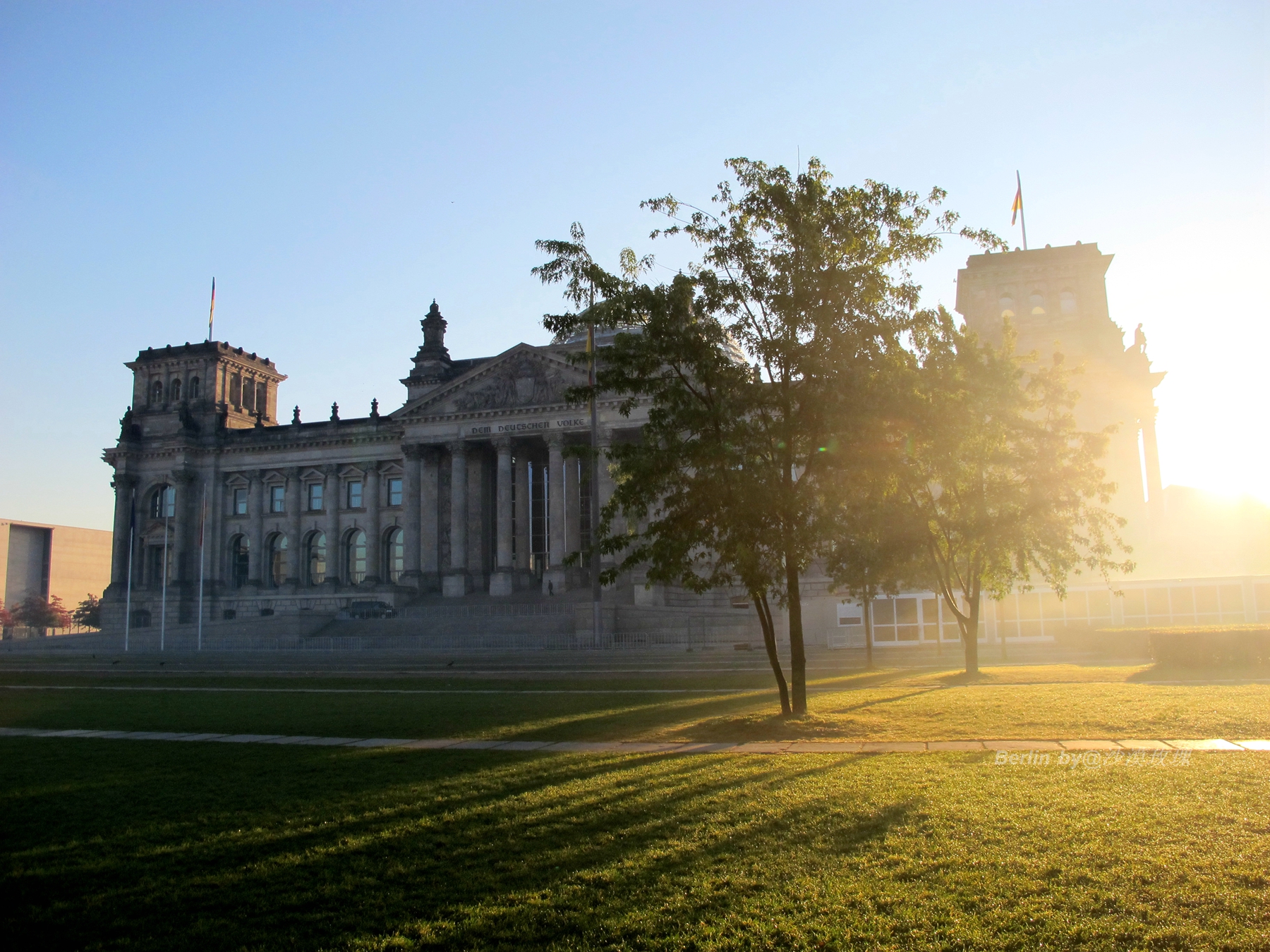 国会大厦正面大片的绿地也作为广场使用,曾名为“国王广场”,现名为“共和国广场”。我到的早,清晨8点草坪上还没有游客。淡淡的晨雾中,国会大厦更显得庄严肃穆。回忆起曾经看过的所有有关日耳曼民族的历史与文化,这一刻突然感受到这个民族的强大。