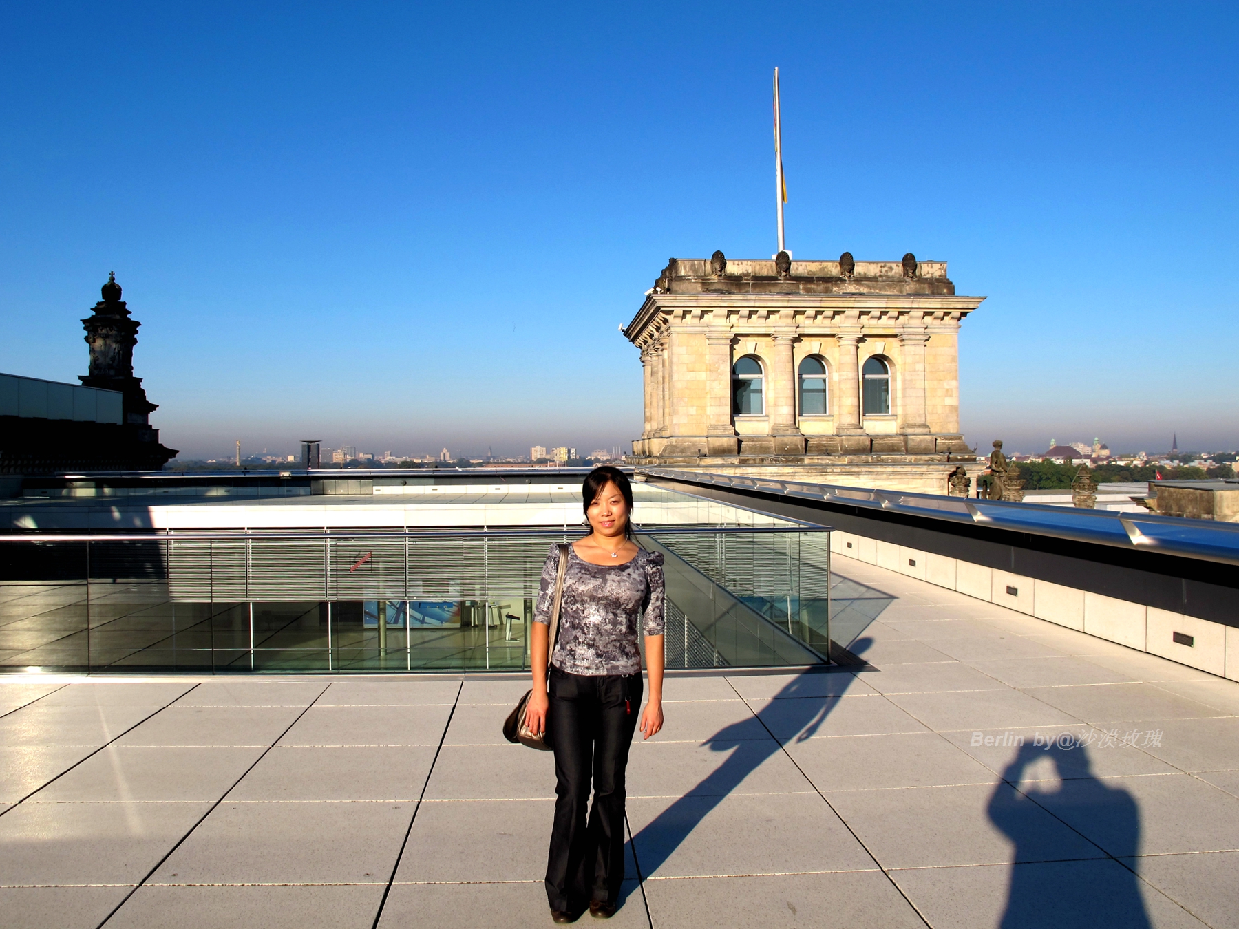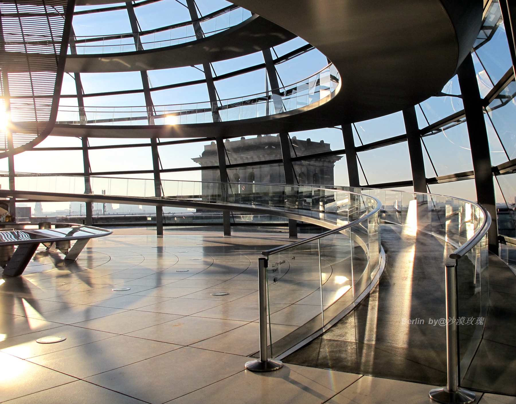 登上穹顶平台,阳光明媚得让人睁不开眼。由于国会大厦地处柏林市中心,在这里可以将全城风景尽收眼底。