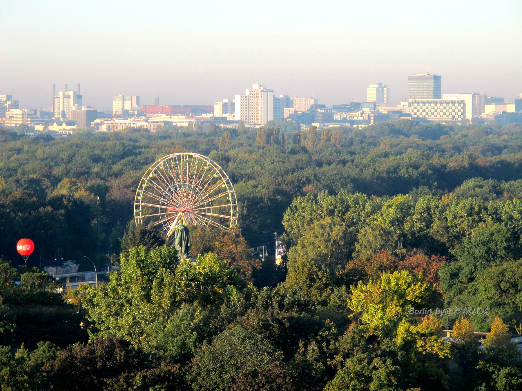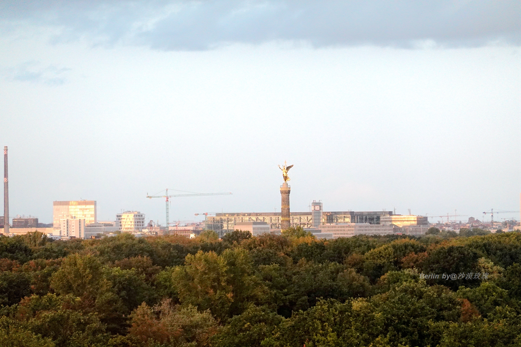 远处的绿地是蒂尔加滕公园,它是柏林市区里的一片“绿肺”,占地达167公顷,是世界上最大的城市公园,免费对外开放。不禁想感叹:在寸土寸金的大城市中心,还能留有这样一片绿地,让当地人锻炼、野炊或闲游。我第三次去柏林的时候,就住在公园附近,晨起去公园里跑个步,满眼无尽的绿色,一天都元气满满。