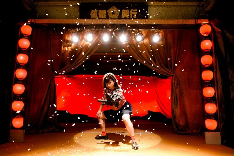 剧中还有小林勇贵导演与武术指导坂口拓精心设计的一镜到底的刺激动作场面,将冲击观众的视觉感官,深刻见识到极恶升级版的《机关枪少女》!