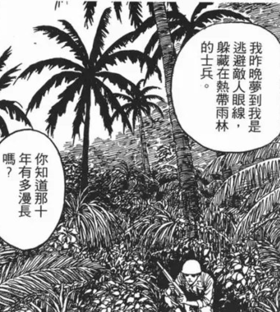 而且根据这个年轻人的讲述,这些梦全部是痛苦万分的经历。就像他讲述的,可能就是日本人在丛林里面以盟军对抗几十年的故事,在漫画的一页里面有这个例子,这个例子也有真人事迹根据是。