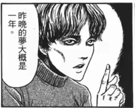如果在梦进入更深层次的梦,梦中梦的话,那个时间的流程也会慢慢的变得非常的长,虽然梦是一瞬间的事情。但是也是有种伊藤润二的那个关于梦的结构里面,一刹那的梦可以是永恒的梦的这种主题。