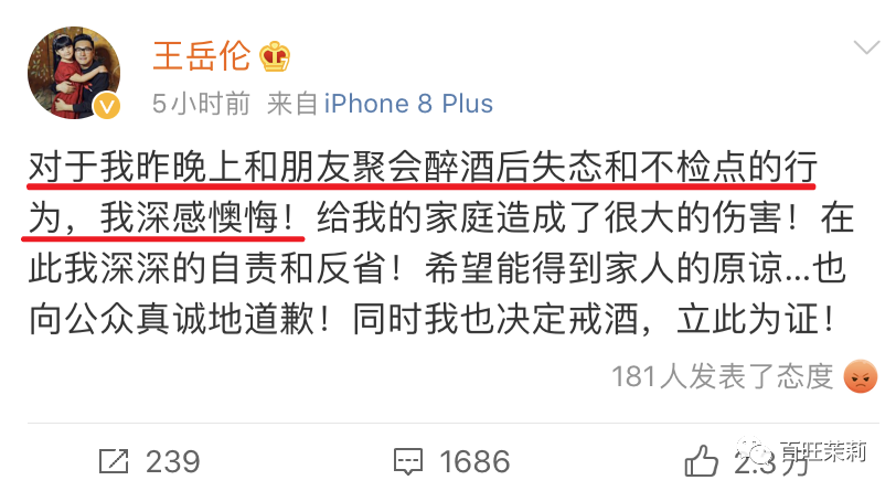 被拍到和女性友人举止“异常亲密”,过了十几个小时,有妻有女的王岳伦总算在凌晨发声道歉了。