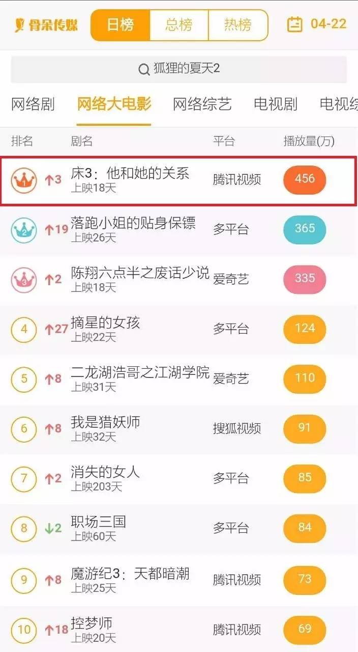 首日播放量no.3——《床3:他和她的关系》
