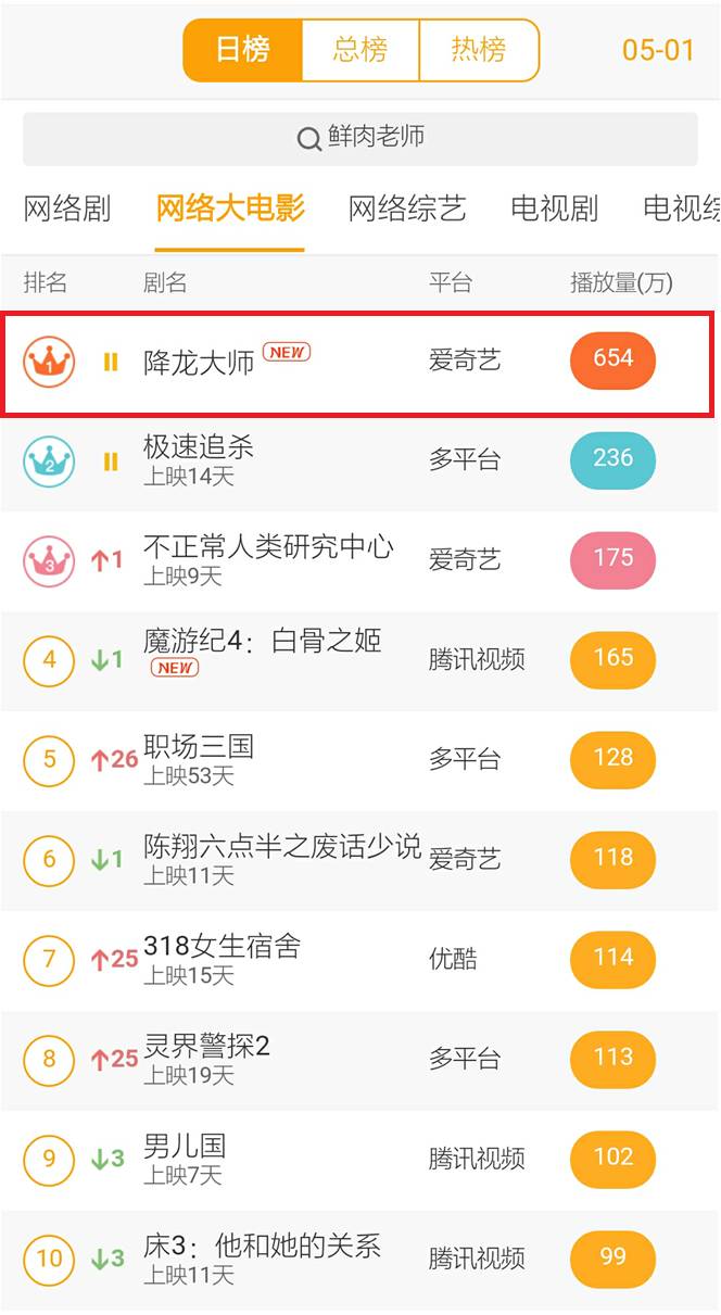 首日播放量no.1——《降龙大师》