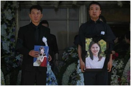 王欢的老公和弟弟手捧王欢遗像,表情严肃而凝重,可想而知,王欢的离去,对他们的打击是有多大。