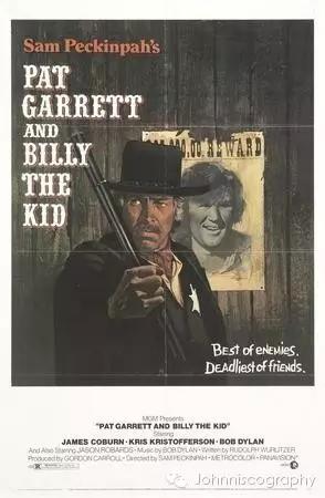 knockin' on heaven's door(叩响天堂之门)这首歌出自1973年的电影《pat garrett & billy the kid》,由bob dylan创作并录制了同名电影原声带。这部电影由著名西部片导演、暴力美学电影开山鼻祖sam peckinpah导演,他的代表作还有《日落黄沙》the wild bunch(1969),《稻草狗》straw dogs(1971)等。