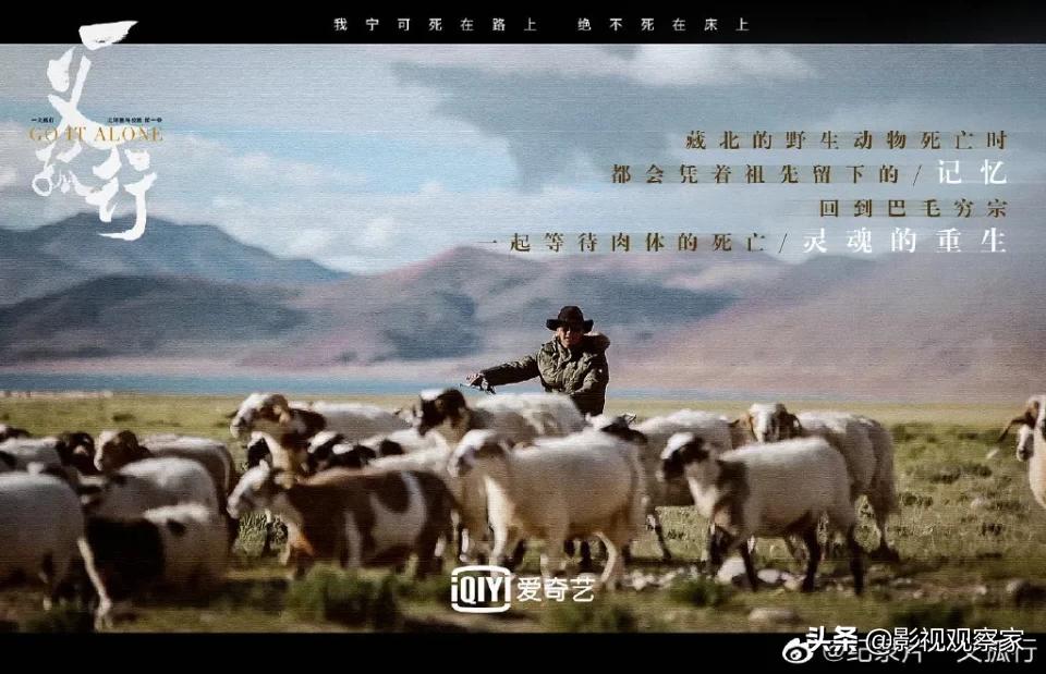 当一行人最终顺利抵达巴毛穷宗,老郑也用他的镜头记录了世人罕见的奇观:美丽的无人区风貌、动物和谐共处、水天一色间有种平时无法得见的原生之美,这座休眠已久的火山口,在郑义的俯拍镜头里像一颗精心镶嵌的宝石,又像清澈的瞳眸……一经抵达,就真的犹如身临天堂之门。而途径一头垂垂老矣、被眼屎糊到“失明”的野牦牛,郑义发出了生命的慨叹:“在这人类生命的禁区,一头将死的野牦牛,美而悲怆,生命以平等的方式走入轮回,寻找属于自己的埋骨之地。”对于历经生死围困、重重磨难,当传说之地终现眼前时,郑义带着无法形容的心情将眼前的一切纪录成片。