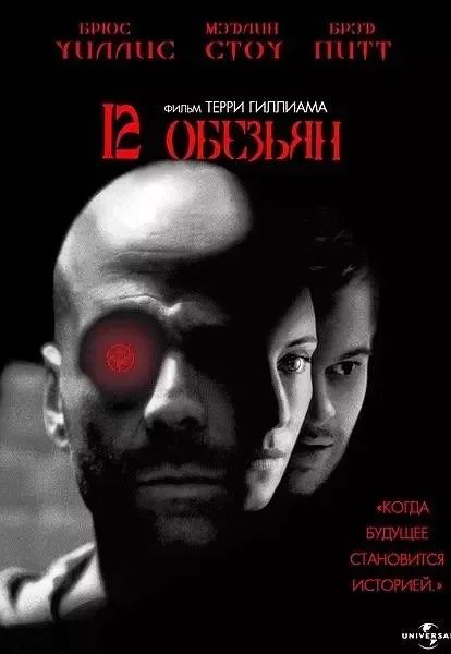9,十二猴子,公元2035年,人类被12只猴子军研制的一种病毒侵袭,大部分人类都在这场病毒灾难中死亡,只有少数人侥幸逃生,但也只能在阴暗的地下,苟且偷生。科学家们决定派人穿越时光回到1996年追查12只猴子军的来历。囚徒詹姆斯·科尔被 挑选为志愿者。阴差阳错,科尔回到了1990年,当他向当时的人们描述未来的那场大灾难时,被当作精神病捉了起来并被医生凯瑟琳·雪莉诊断为精神分裂症。科尔在病友杰弗里·戈因斯帮助下逃脱,回到了未来。因为没查清12只猴子军的来历,科尔再次被派回了1996年。科尔这次发现了12只猴子军的起源地在费城,他找到了医生凯瑟琳,二人一起展开了追查12只猴子军的冒险之旅!