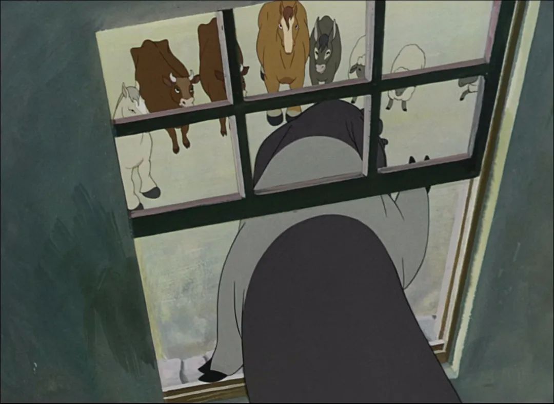 电影又故意加入了一头小猪,并引用了《动物庄园》的故事,令讽刺的意味达到新的高度。
