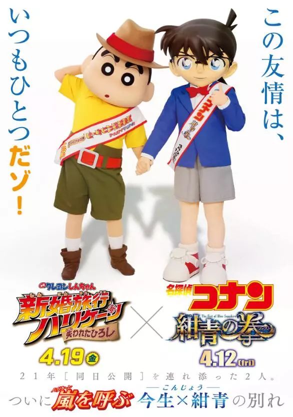 之前,《蜡笔小新》就跟《名侦探柯南》一起搞联动,当小新和柯南关系非常好地站在一起时,连毛利兰都要吃醋了。