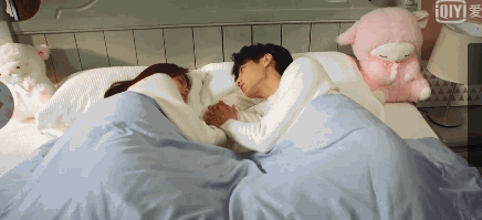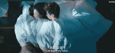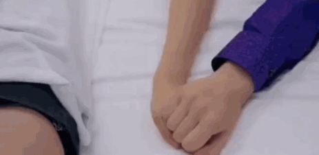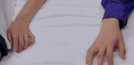 两只手在床上龟爬,好不容易牵上了。