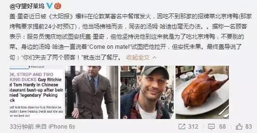烤鸭吃还是不吃,这是一个问题——《亚瑟王》和《阿拉丁》扑街了,“盖 · 里奇果然不配吃烤鸭”;《绅士们》超常发挥,“盖导这是我新买的烤鸭请笑纳”;《人之怒》一出,“盖 · 里奇的烤鸭被我没收了”。