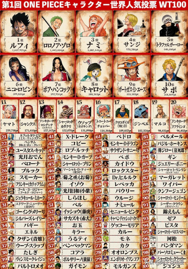 前段时间,《海贼王》官方弄了一个全球全角色人气投票活动,最终的投票结果在5月5日通过电视直播的方式公开。