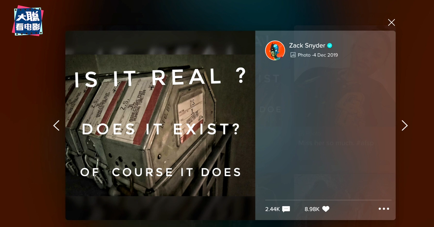 扎导更是成为导剪运动的核心人物,在社交网络平台和影迷展开了各种互动,大家都希望看到导剪版的心愿和呼声,越来越高。